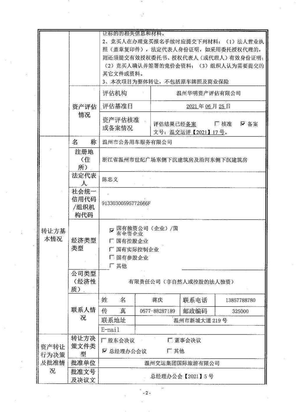 浙C25072等8輛二手車轉(zhuǎn)讓項(xiàng)目信息披露